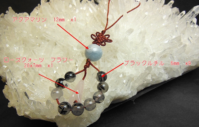 | 商品名 | アクアマリン・ブラックルチル・ローズクォーツフラワー ストラップ | ||||||||||||||||||