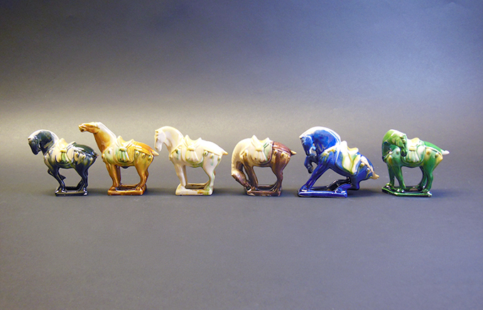 唐三彩 馬(午)の開運置き物 唐三彩は中国・唐代の釉薬の色みを再現した陶器で、皇族から愛用されたと伝承される「六順馬」の置き物です。風水の陰陽理論で 陰=静・思・羞、陽=動・勤・昂 とされることから、陰陽の調合で物事を良い環境にする縁起物です。ぜひ「何事もウマく行く!!」と願いを込めて飾りましょう。 <陰> |