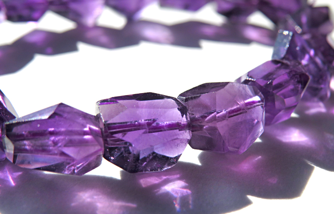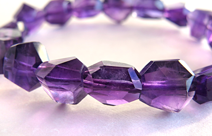 アメジストのブレスレット 家庭運/事業運/理解力/生命力/魔除け アメジスト(紫水晶) は、恋愛・家族関係を良好にし、精神安定・ストレス軽減など健康面にも効果があるとされています。財運・事業運アップにも◎。 こちらの商品は透明感のある深い紫色で、ジュエリーとしても上品にお使いいただけるブレスレットです。 |