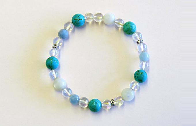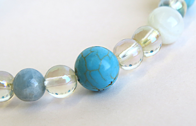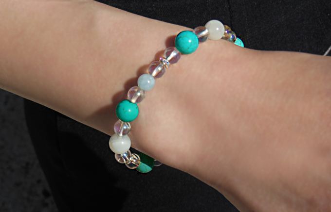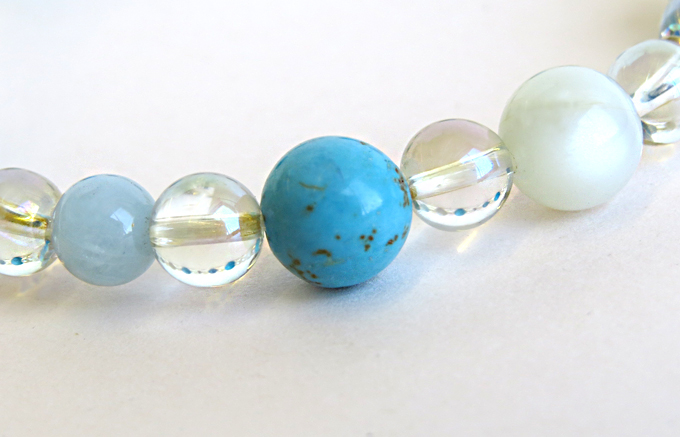 | 商品名 | 旅のお守り・厄除ブレスレット(B) トルコ石・ムーンストーン・アクアマリン・水晶レインボーオーラ |